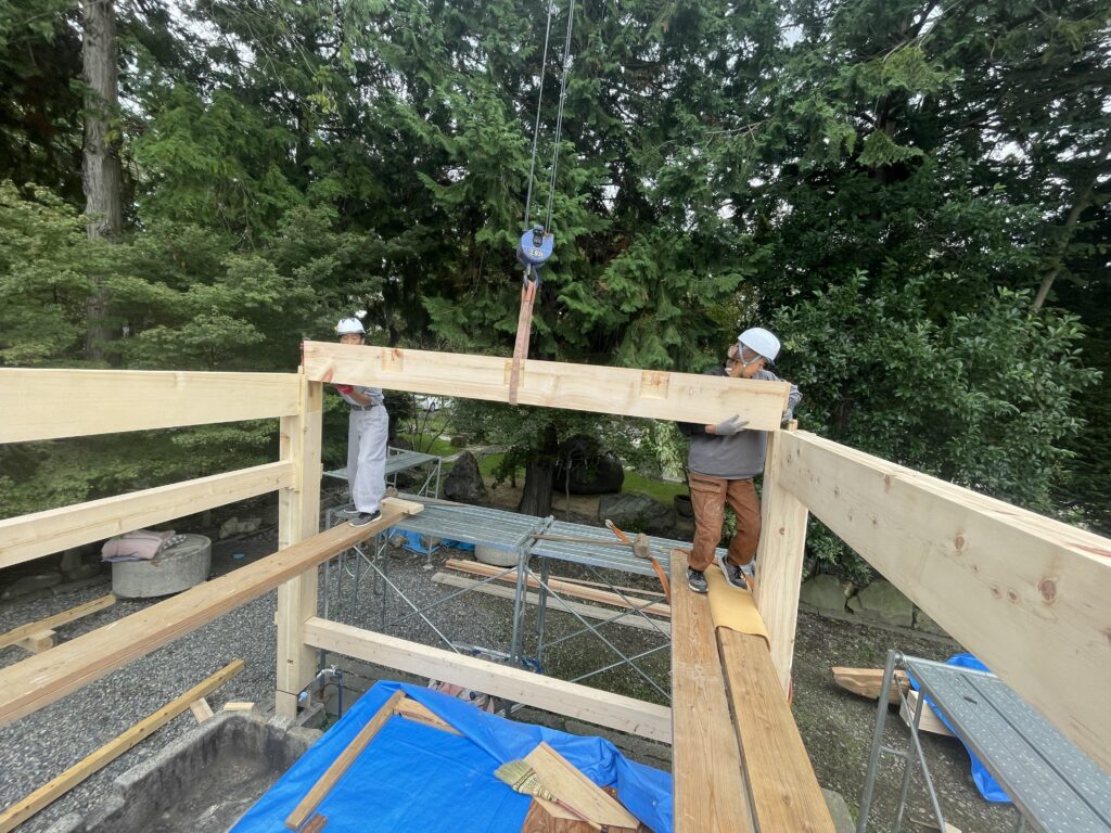 周岳山 法蔵寺様井戸の上屋1層目建て方風景