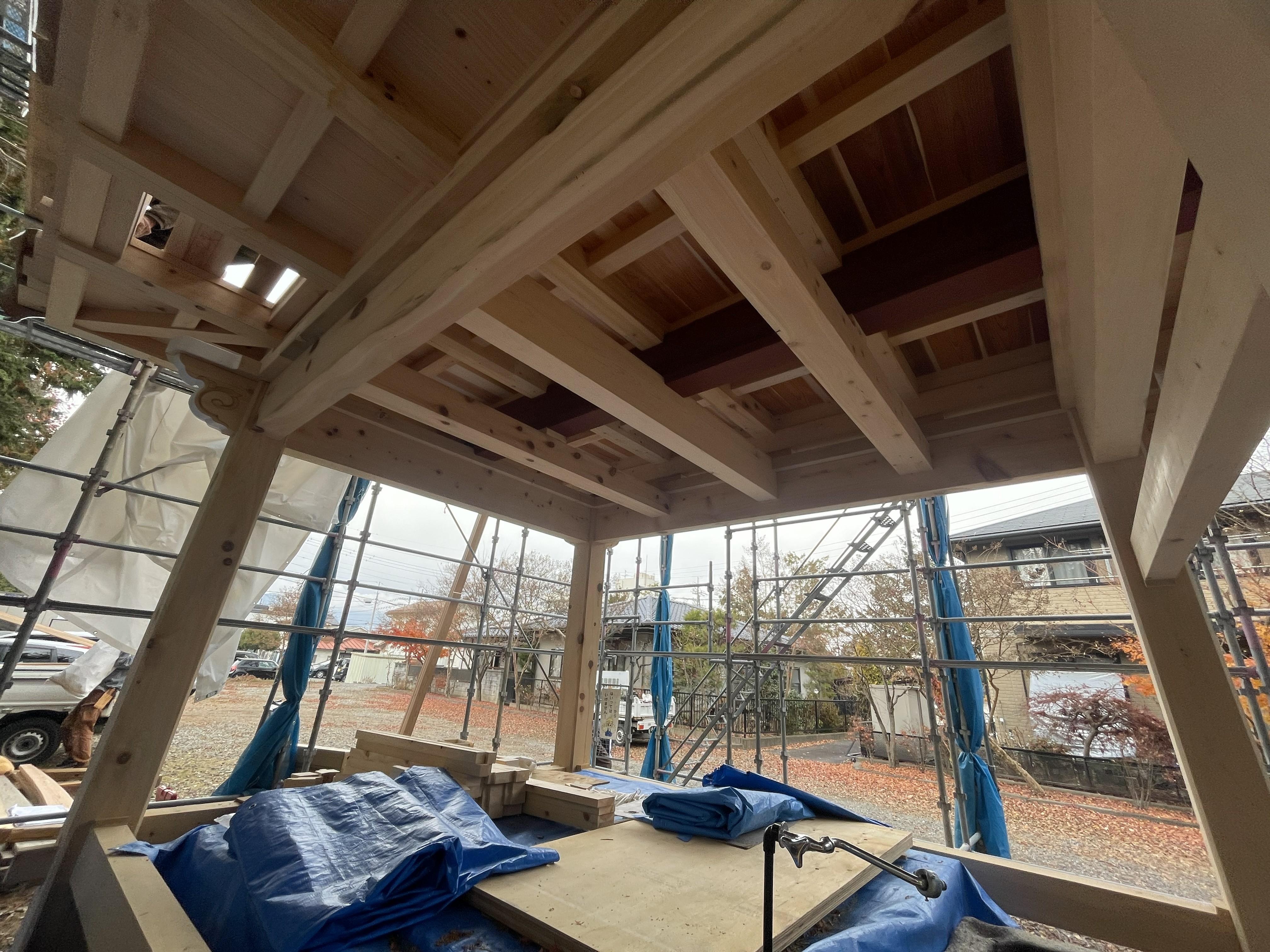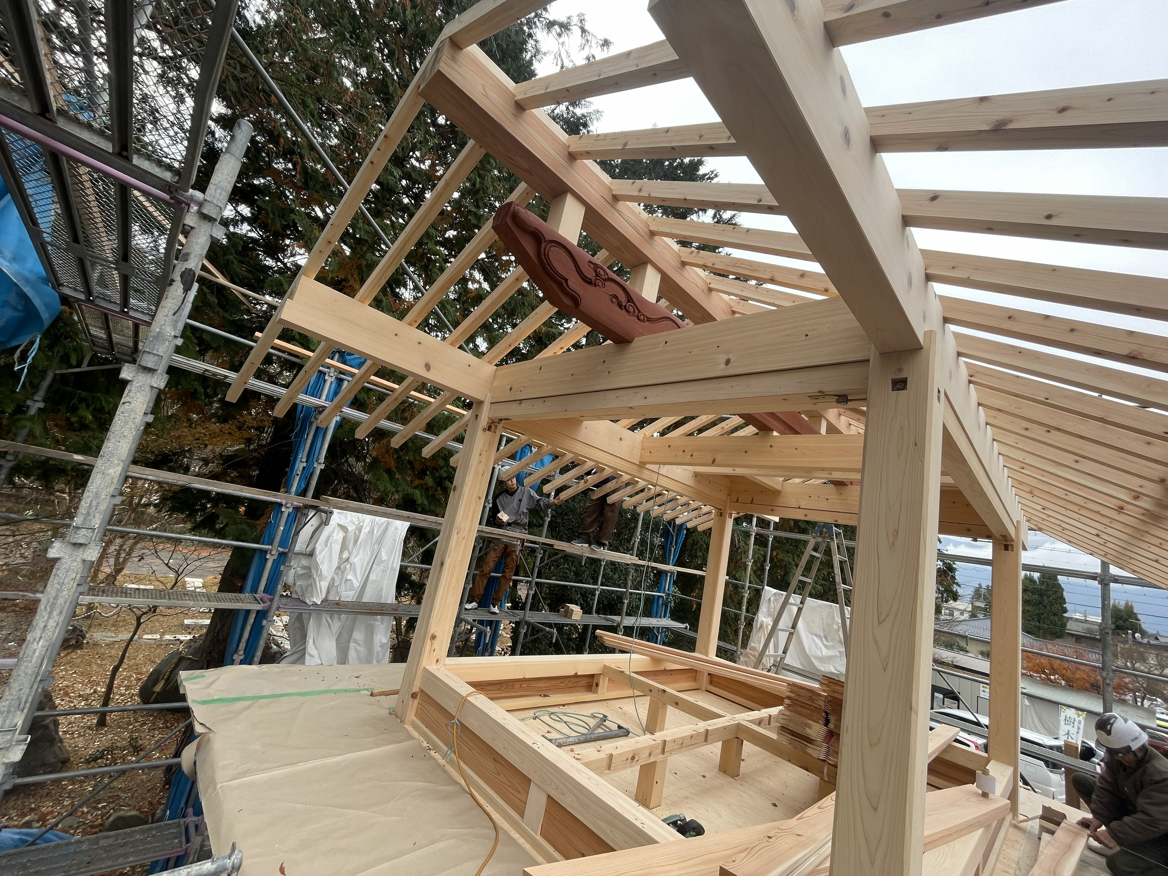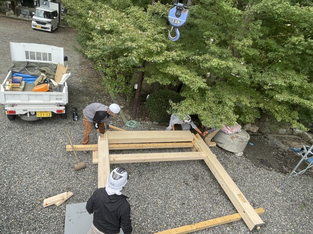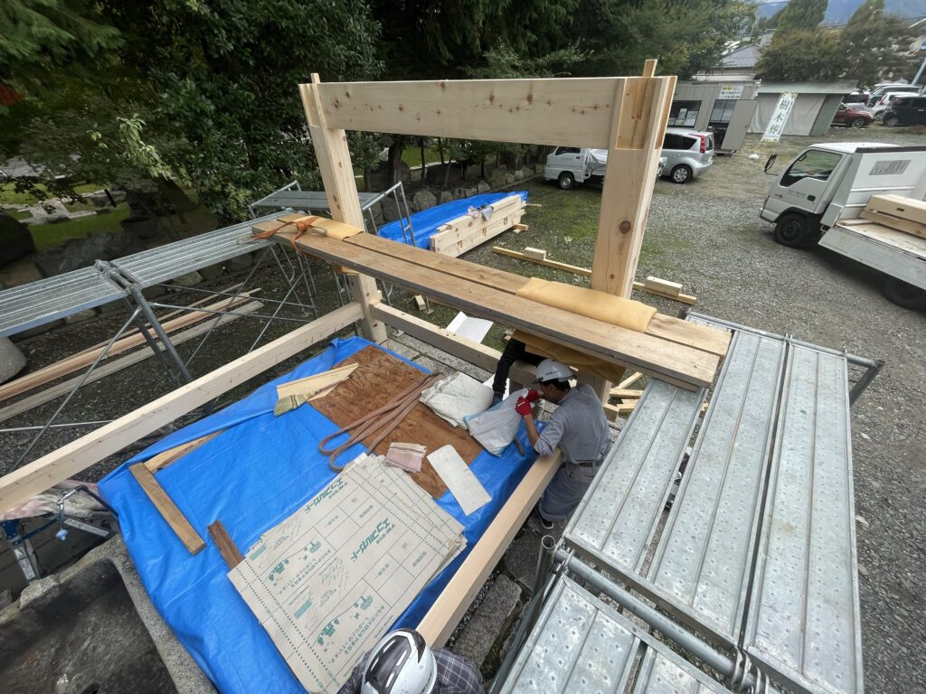 周岳山 法蔵寺様井戸の上屋1層目建て方風景