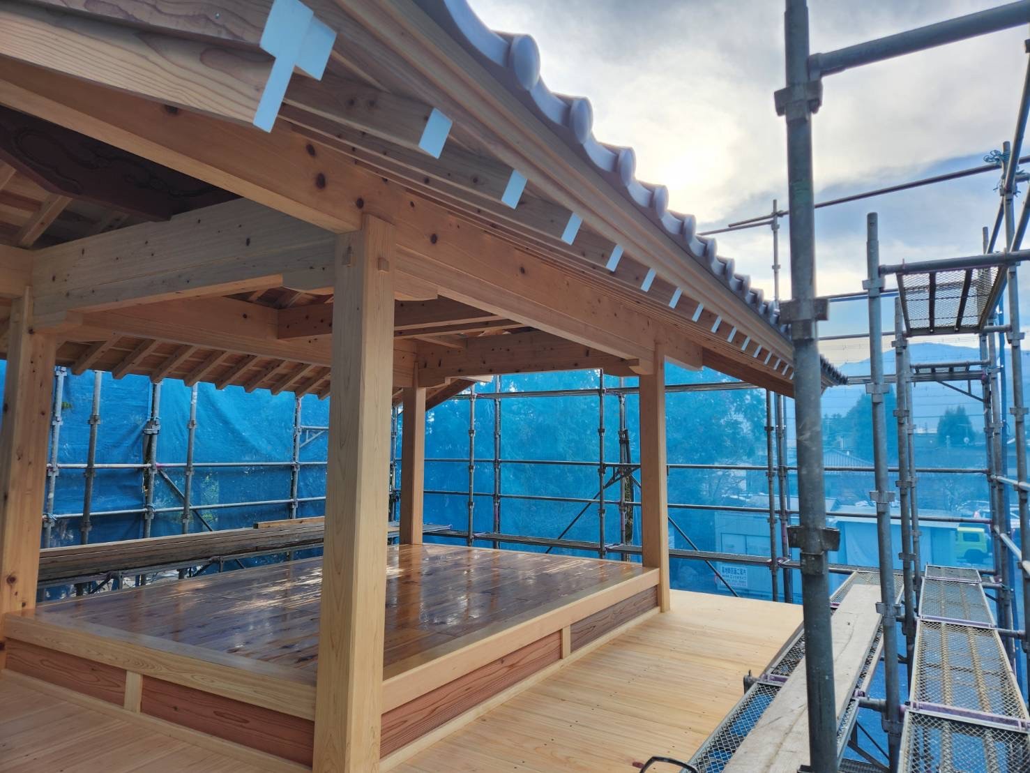残るは廻廊と2層目に上がる階段になります。これは来年令和8年1月~2月完成予定になります。